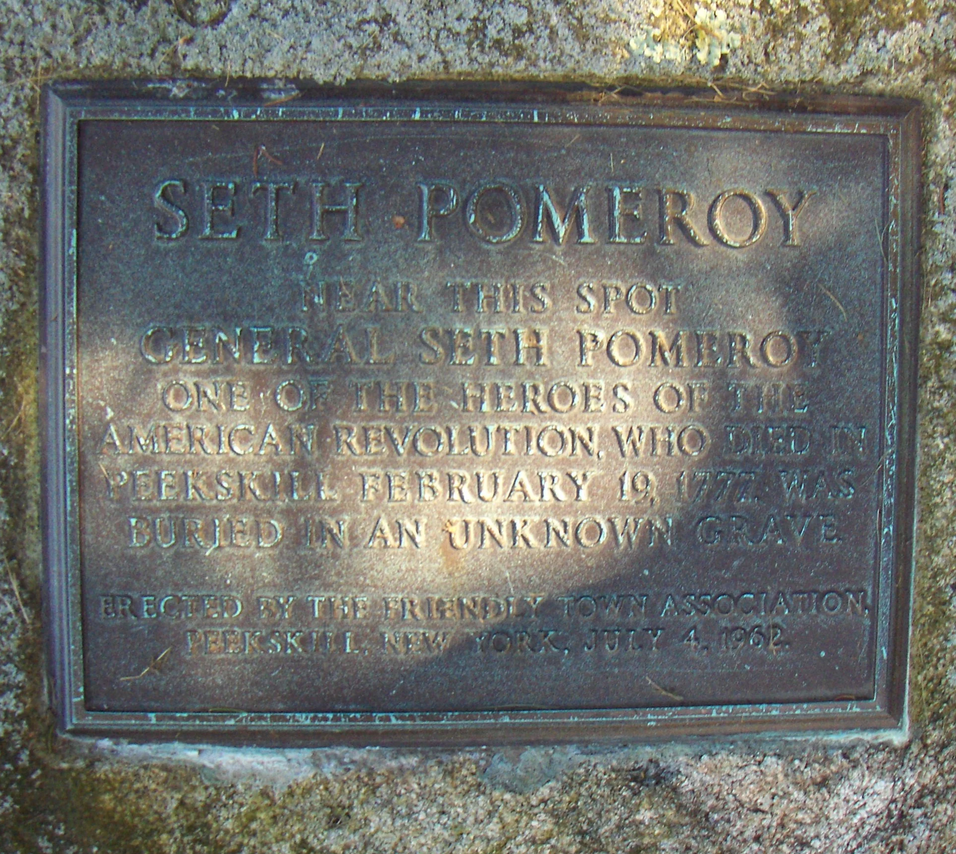 Plaque noting final resting place of Seth Pomeroy in Old Van Cortlandtville Cemetery, Cortlandt Manor, NY.